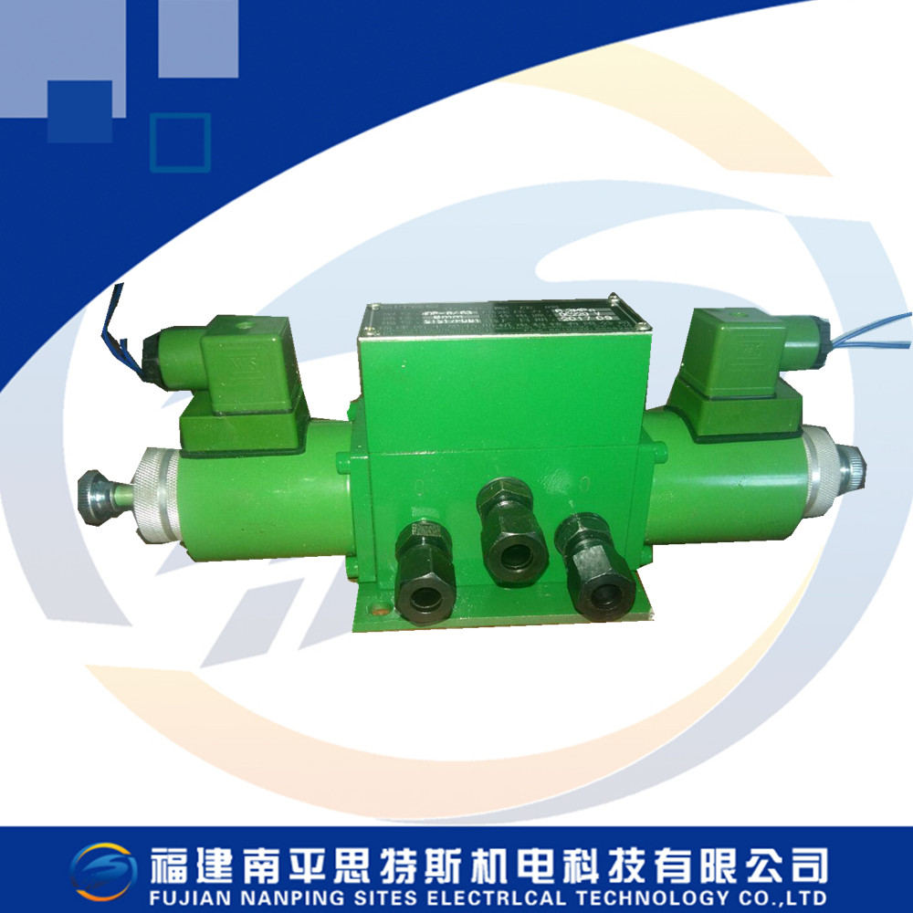 本閥由電磁鐵、閥體、滑芯等組成。(參看圖1)當左電磁鐵動作時,壓力油P通向B;A通向O腔回油;當右邊電磁鐵動作時壓力油從P通向A;B腔通向O腔回油,實現油路切換。本閥按接線圖2方式接線;動作完成后能自動將電磁鐵電源切斷,同時切換到另工作情況的準備狀態。沒有壓力油通入時本閥微動開關自動復位,因此連接時電磁鐵線圈必須接入微動開關的常閉接點。